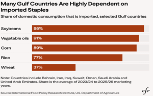Gráfico 1: Dependencia del consumo de determinadas materias primas agrícolas del Golfo