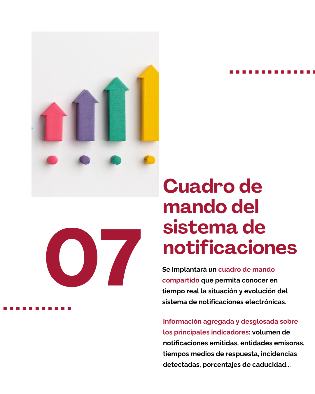 Se implantará un cuadro de mando compartido que permita conocer en tiempo real la situación y evolución del sistema de notificaciones electrónicas. Este panel deberá ofrecer información agregada y desglosada sobre los principales indicadores: volumen de notificaciones emitidas, entidades emisoras, tiempos medios de respuesta, incidencias detectadas, porcentajes de caducidad, entre otros. Esta herramienta permitirá una supervisión más eficaz del funcionamiento del sistema y facilitará la adopción de medidas de mejora continua.
